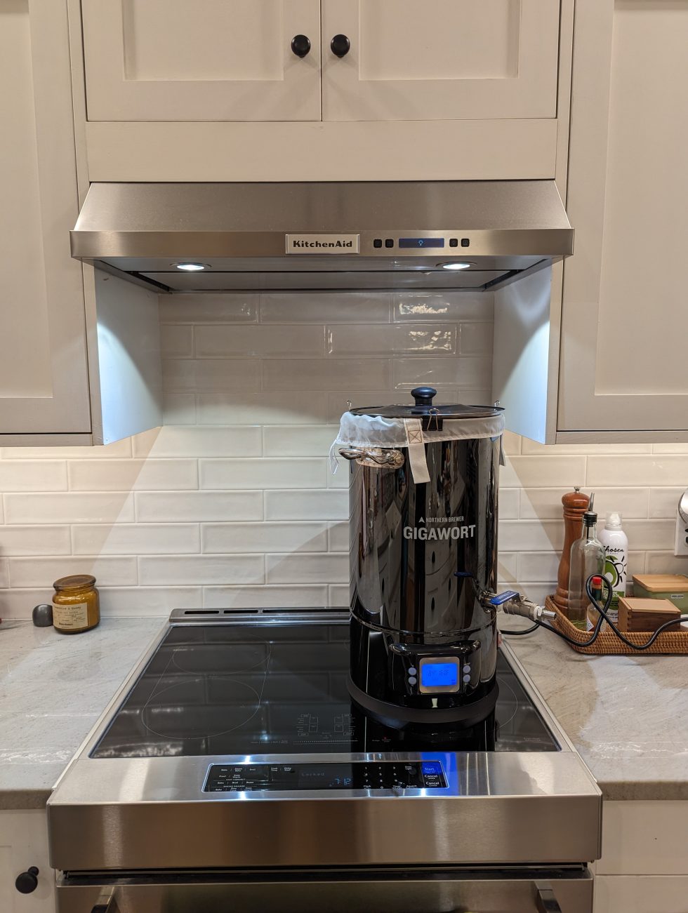 The condensation on the range hood in the brewing space is the one major issue with the space that I'd like to resolve, but before replacing the range hood with a condensation hood, I wanted to do a test batch in the kitchen in the house to see if the behavior was similar.