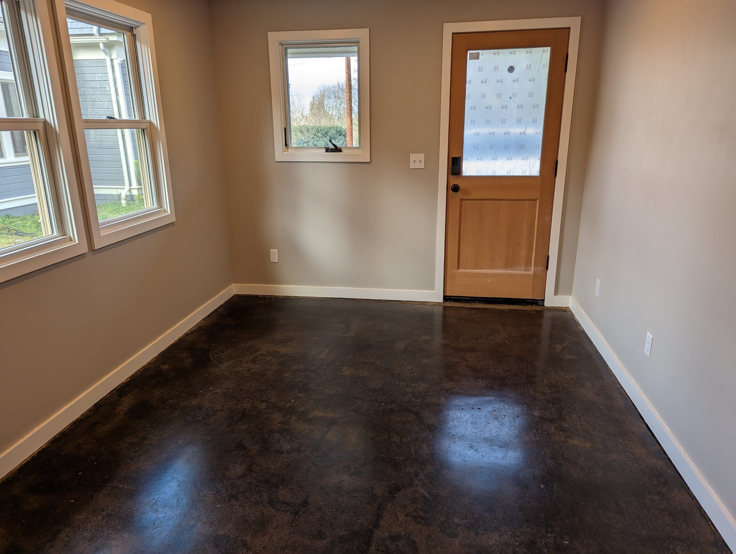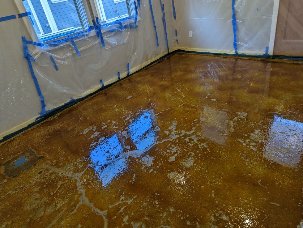 Acid staining the concrete floor in the brewing space proved to be a very time-consuming process, but it's finally done and I love the results.