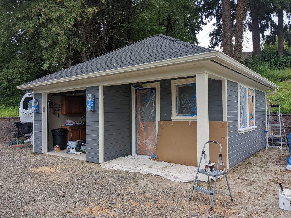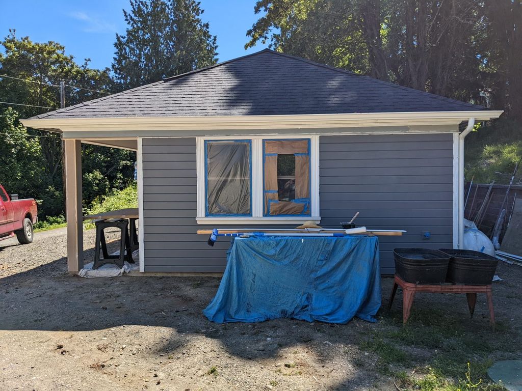 Since we could paint the outside of the garage/brewery we figured why not. It took a couple of days but we probably covered the cost of the brewery mini split with our time and kept things moving as well.